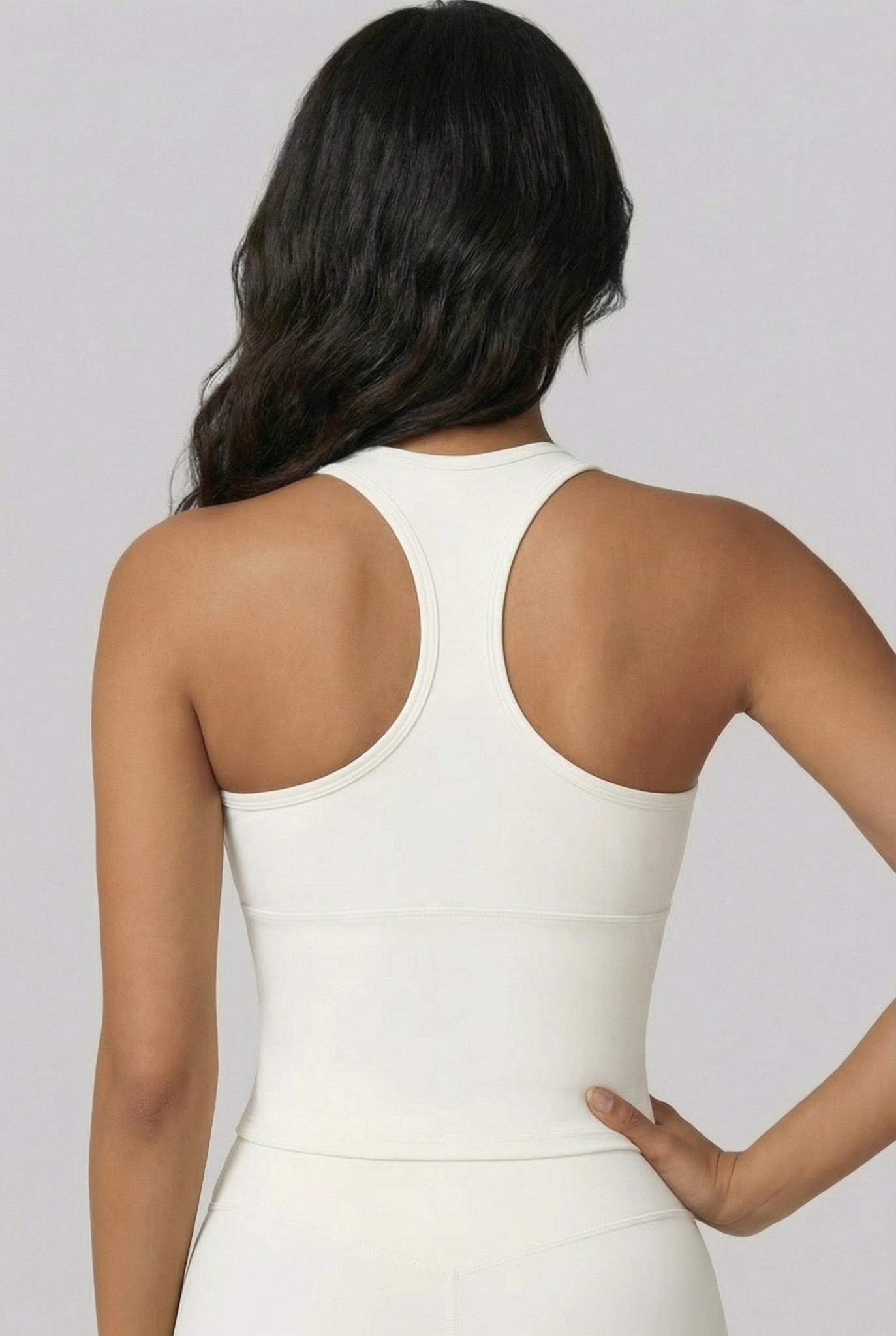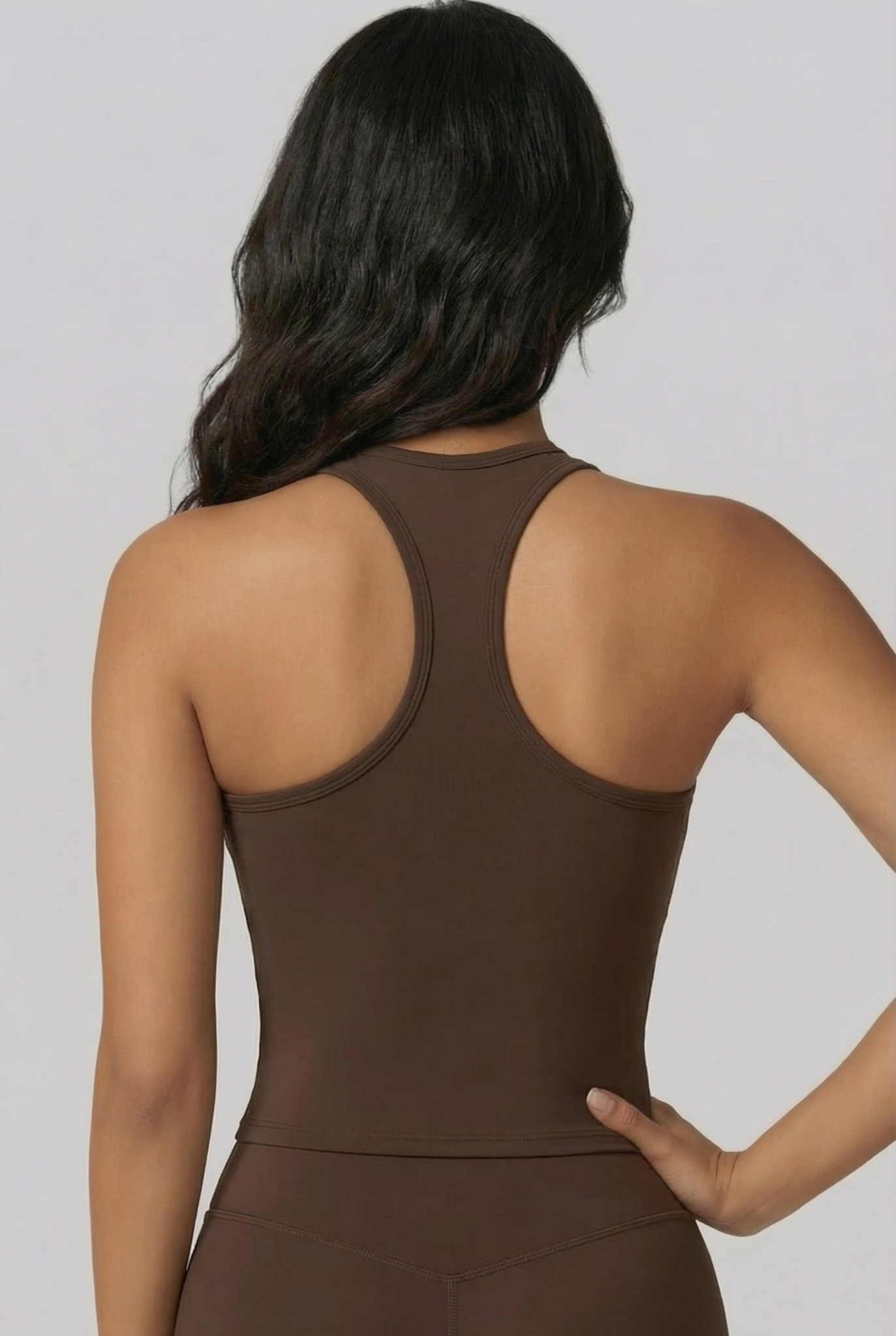 Ce top de sport sans manches est conçu pour une utilisation polyvalente lors de la pratique du Pilates, du fitness ou d’activités sportives du quotidien.